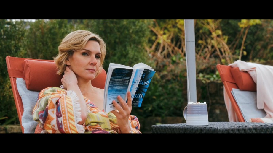 Recordemos que una puesta en abismo es una obra dentro de otra obra, cuando la primera establece un diálogo con la segunda, aportándole elementos que permiten resignificarla de manera sustancial. En un episodio clave de la serie vemos a su protagonista, Carol Sturka, en actitud relajada leyendo un libro. La cámara enfoca la portada y advertimos que se trata de “La mano izquierda de la oscuridad”, de Ursula K. Le Guin, publicada originalmente en inglés en 1969. Recordemos que Carol es escritora… y que esta es la única referencia literaria no ficcional que aparece en toda la serie. La elección no es por lo tanto casual. ¿Qué nos dice Gilligan con esta figura?